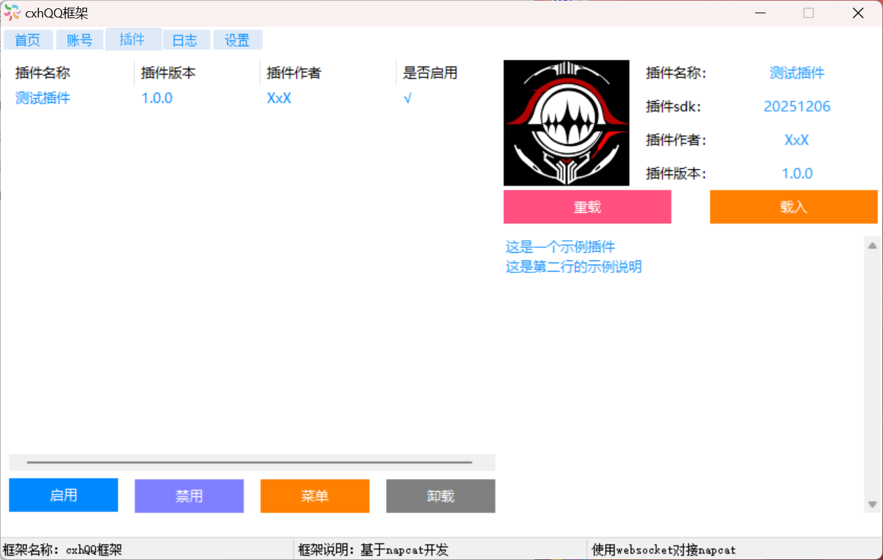 未兼容任何框架及插件,仅供测试和自己娱乐使用,纯本地化运行,没有版本限制,没有链接任何服务器。